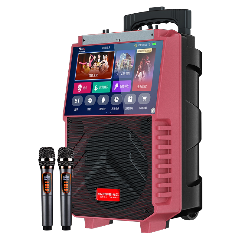 先飞广场舞音响带显示屏家用KTV户外拉杆视频蓝牙音箱点歌机一体