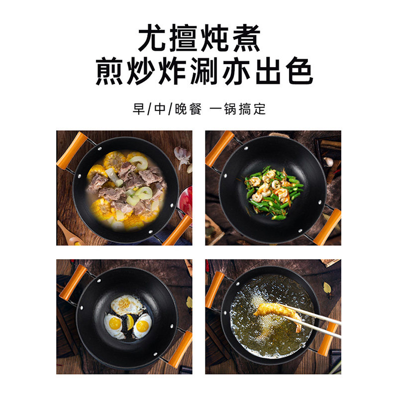 铁锅官方旗舰炒菜锅老式炒锅铁锅家用不粘锅无涂层燃气灶适用