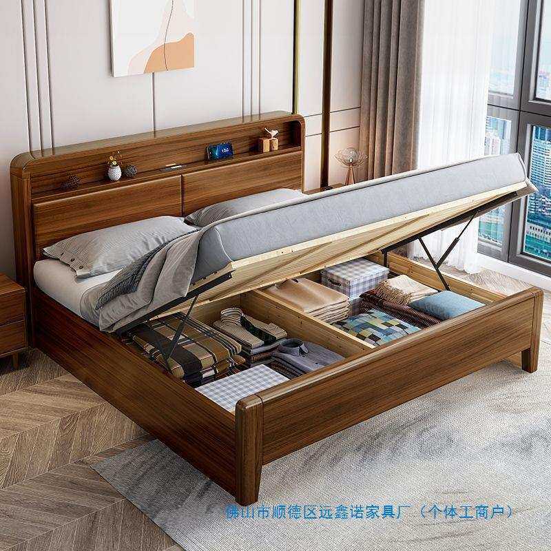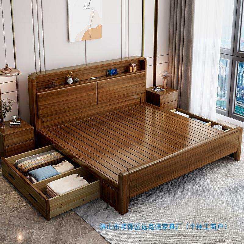 实木床1.5m双人床家用主卧大床1.8m带储物床现代简约1.2m单人床