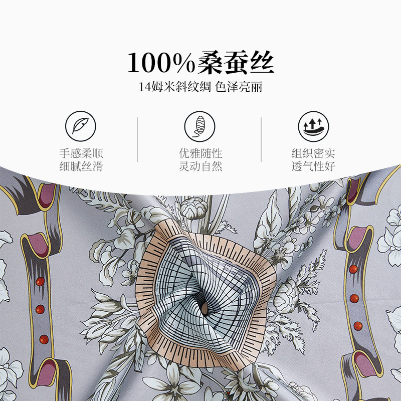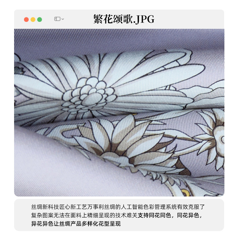 万事利新品桑蚕丝丝巾双面异色75cm方巾生日礼物女生--繁花颂歌