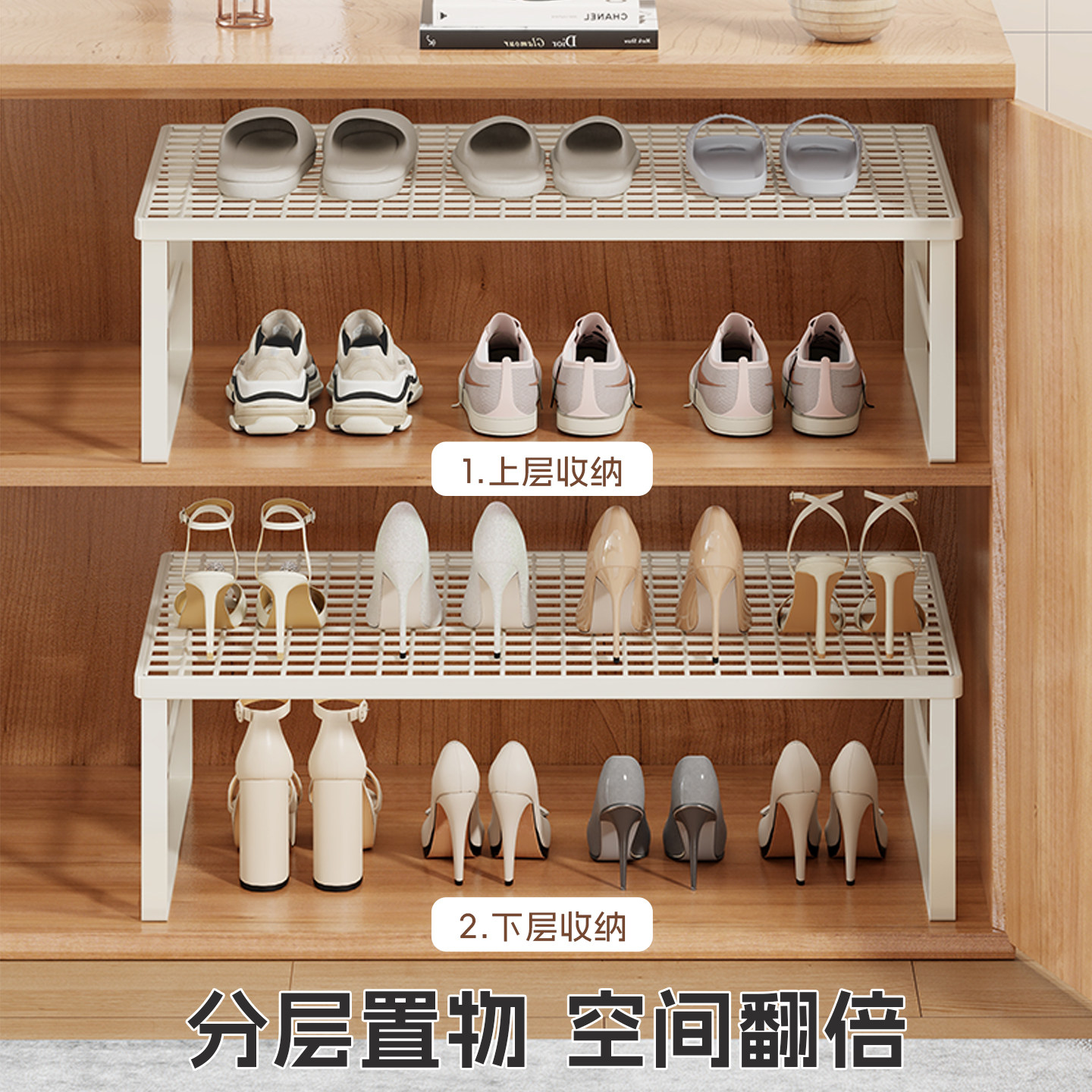 家用鞋柜收纳神器省空间分层隔板柜子可伸缩鞋架下挂式悬挂置物架
