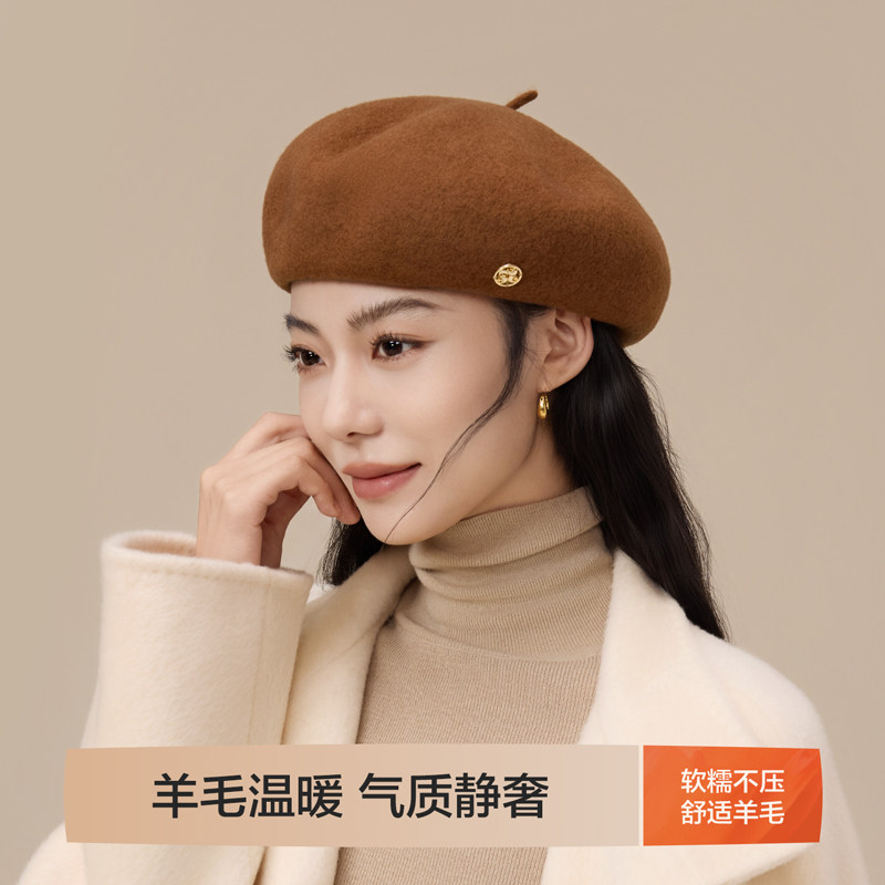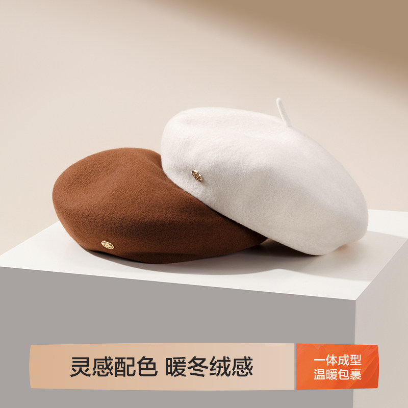 HLA/海澜之家女士秋冬贝雷帽韩系英伦百搭复古文艺新款帽子学院风