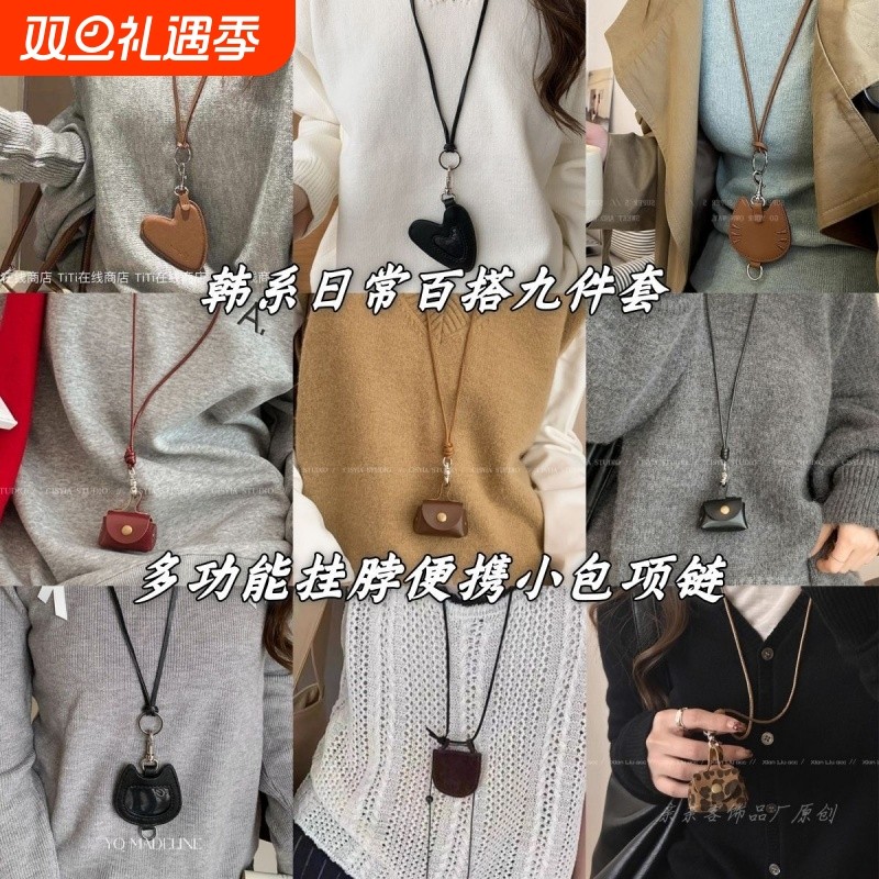 9款~小包爱心挂绳皮质项链秋冬挂脖配饰毛衣链零钱包挂件耳机墨镜