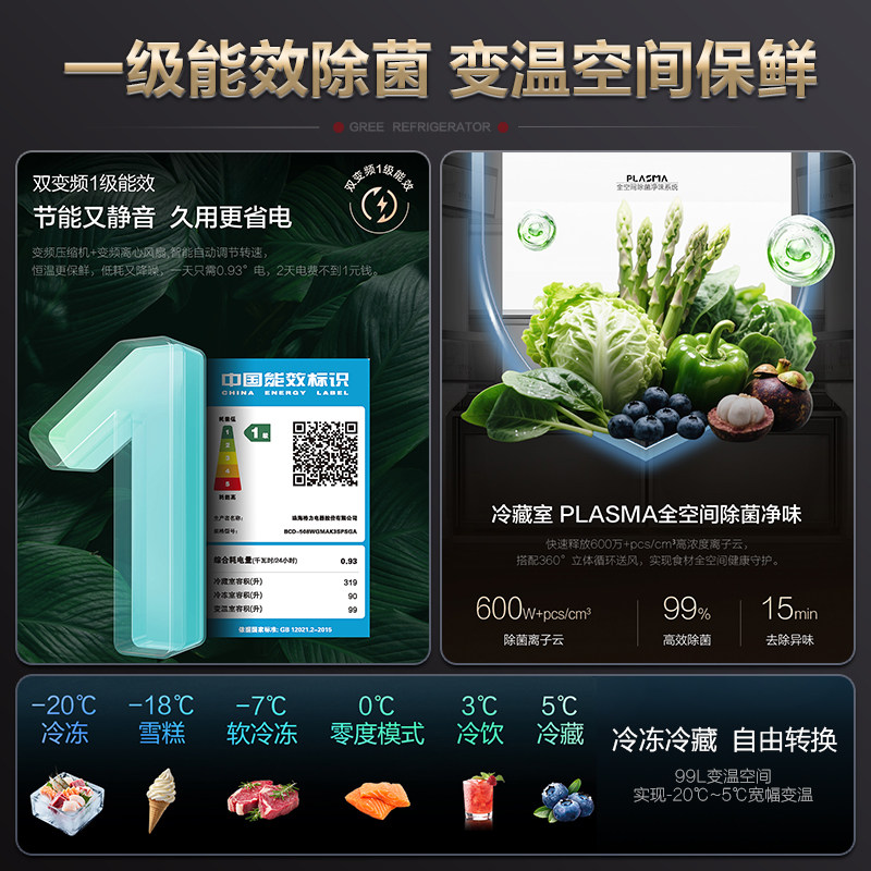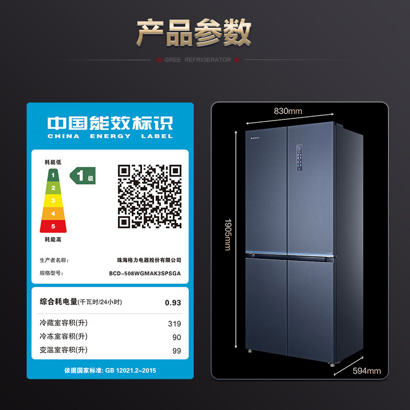 格力嵌入式十字对开门变频冰箱家用双系统除菌净味508L大容量超薄