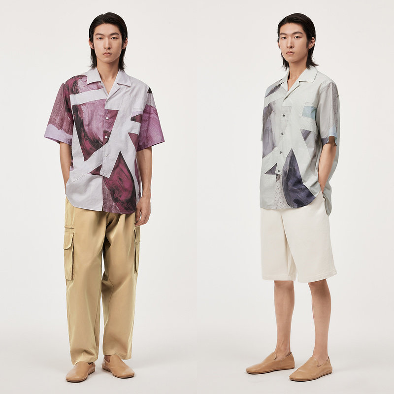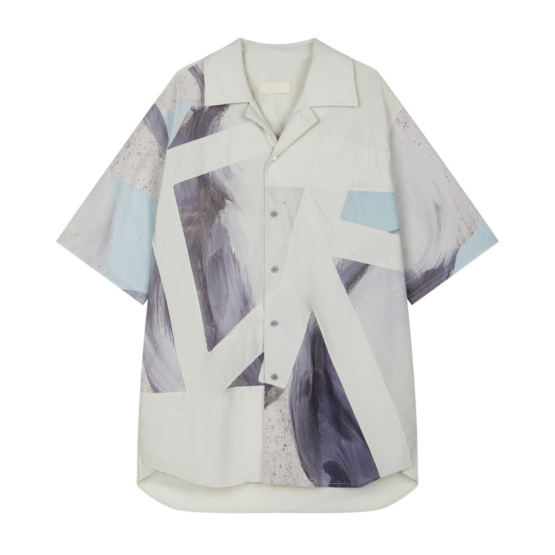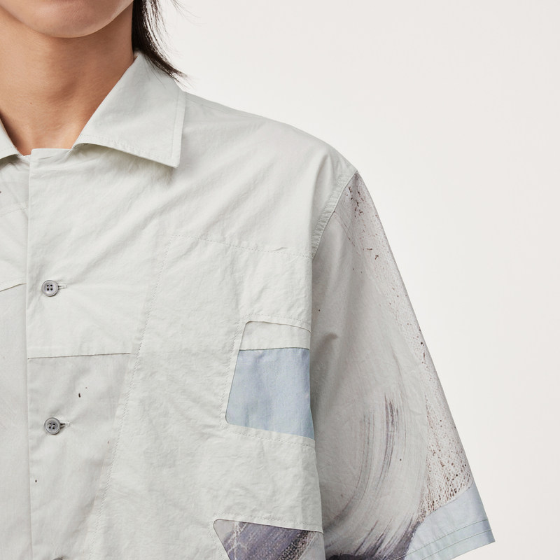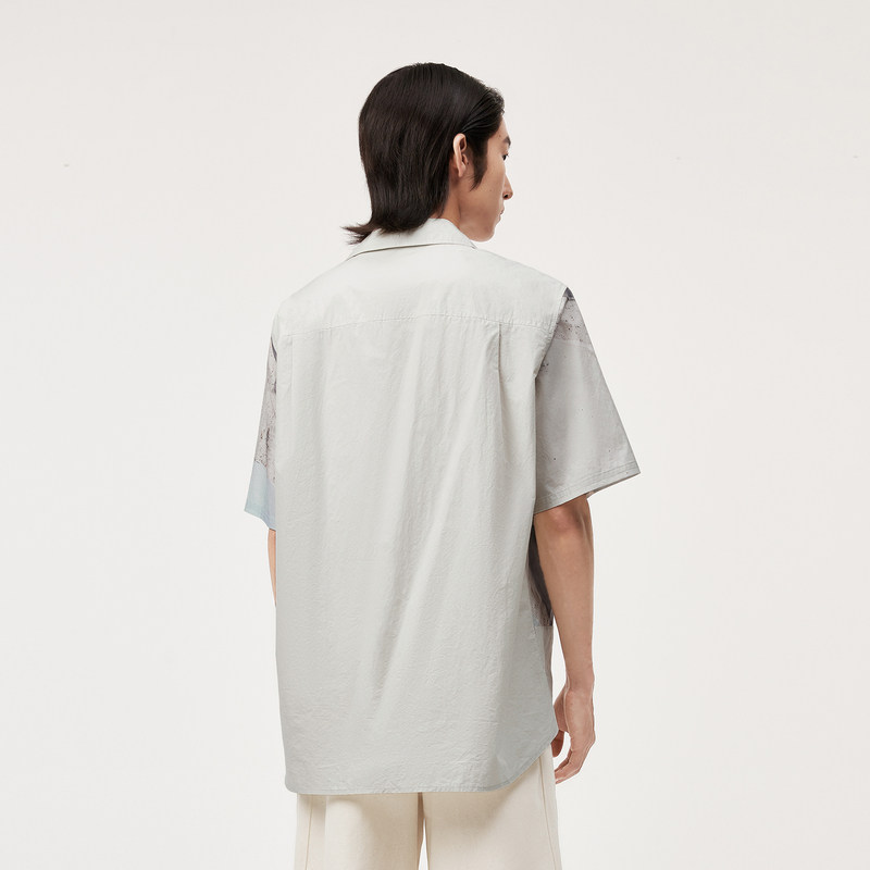 速写男装官方旗舰古巴领衬衫男款夏季新款贴布撞色设计感短袖衬衣