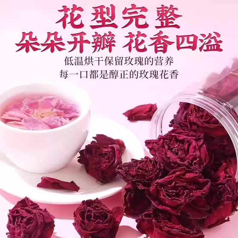 云南冻干墨红玫瑰花茶大朵干泡水重瓣疏肝解郁官方旗舰店正品新鲜