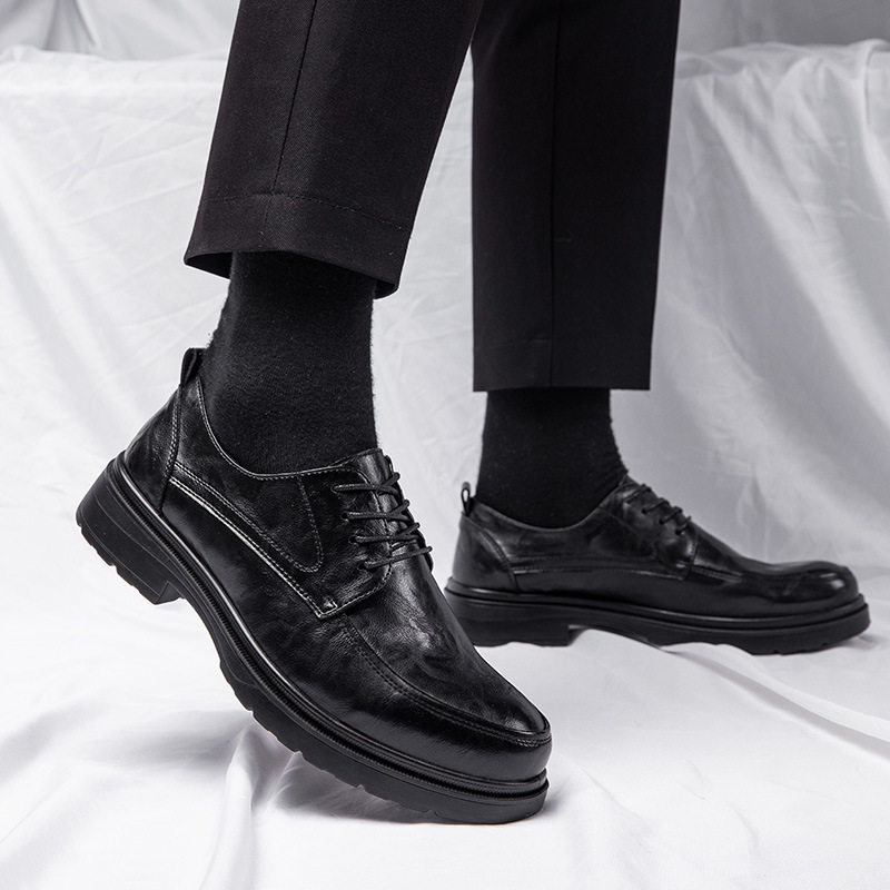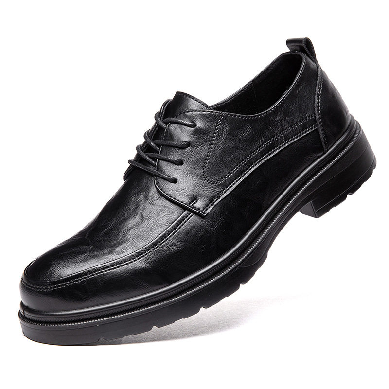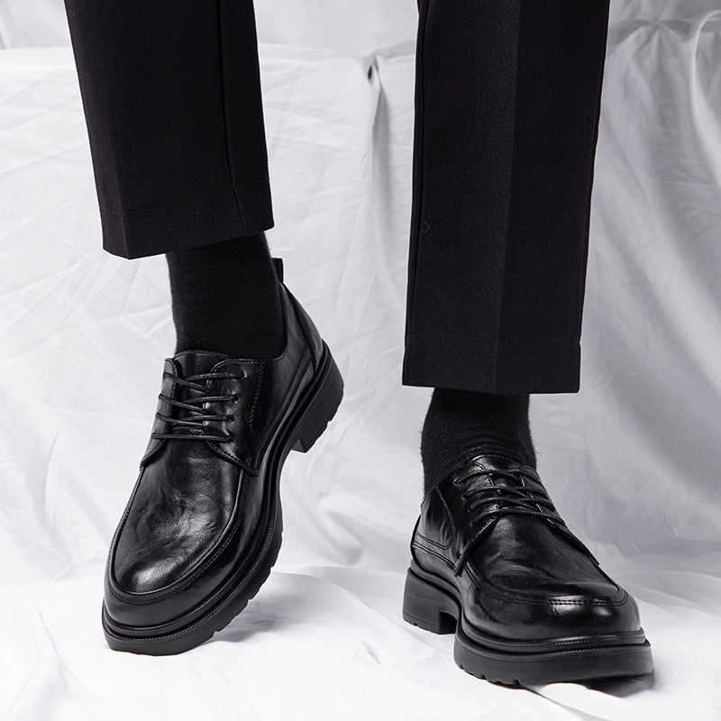 意尓康皮鞋男款真皮牛皮男士休闲商务大头德比厚底增高黑色圆头