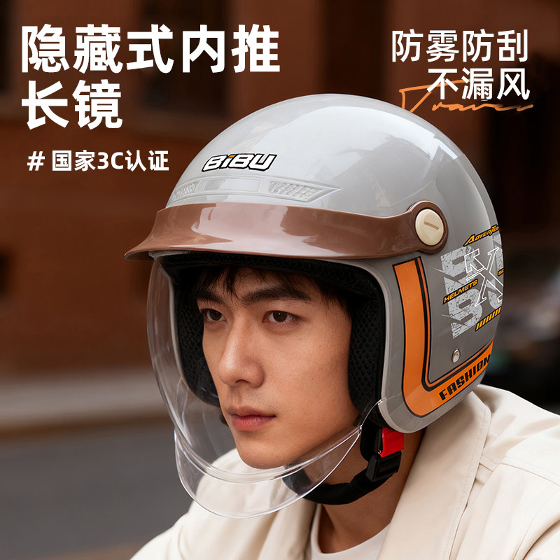 新国标3C认证电动摩托车头盔男女士冬季复古半盔四季透气轻便头盔