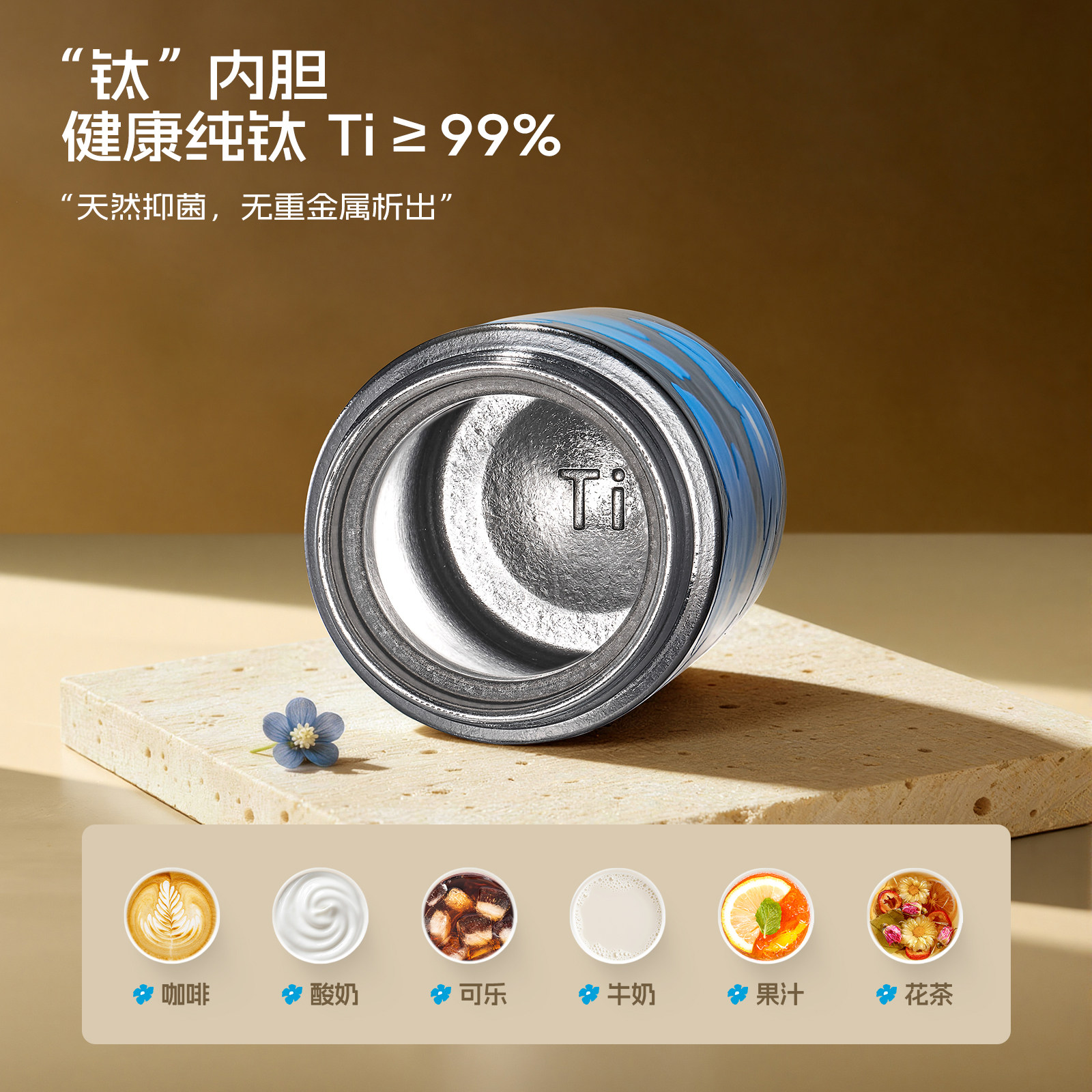[官方正品]飞剑高档纯钛保温杯男女高颜值情侣保鲜抑菌双层钛水杯