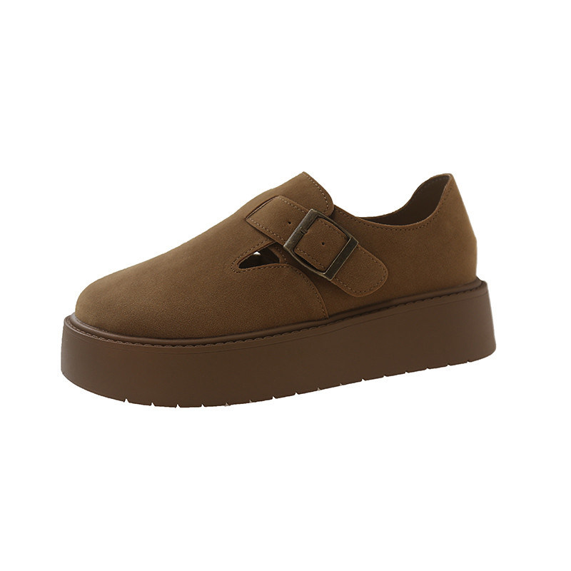 羊皮版~棕色高跟小皮鞋女2025秋冬新款增高单鞋英伦风厚底乐福鞋