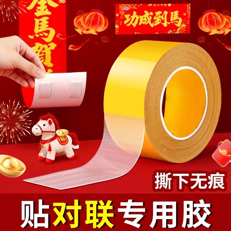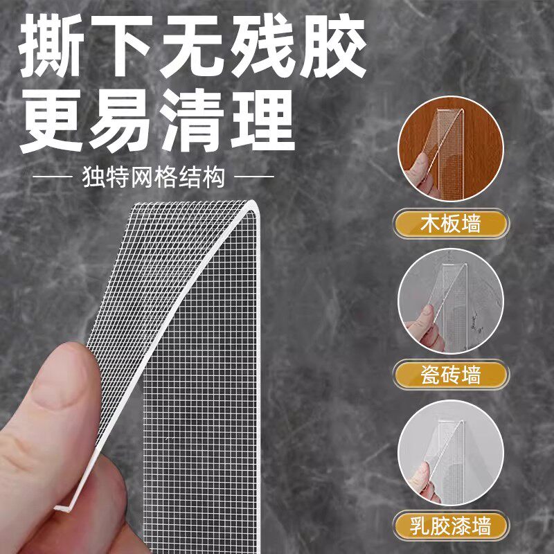 网格无痕双面胶不留痕高粘度布基双面胶带强力固定墙面粘地毯地垫地板透明防水耐高温接缝贴春联福字手撕胶条
