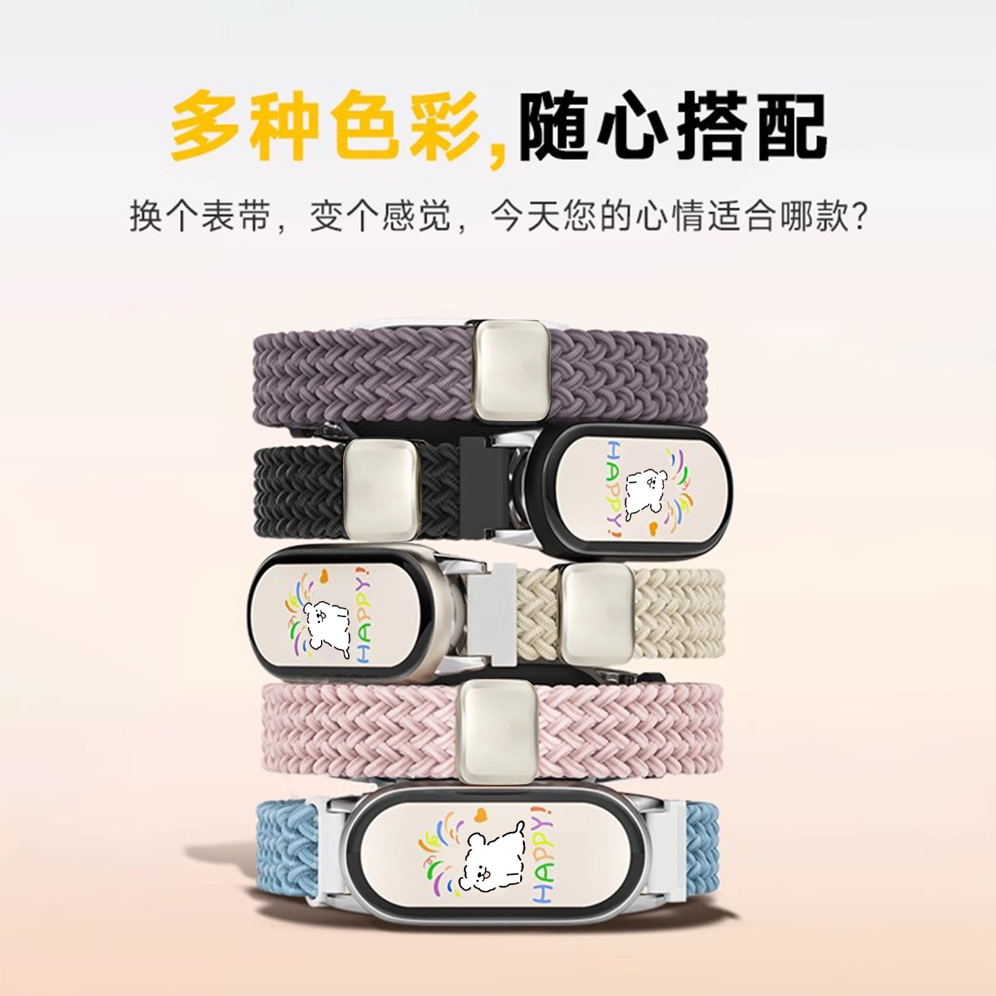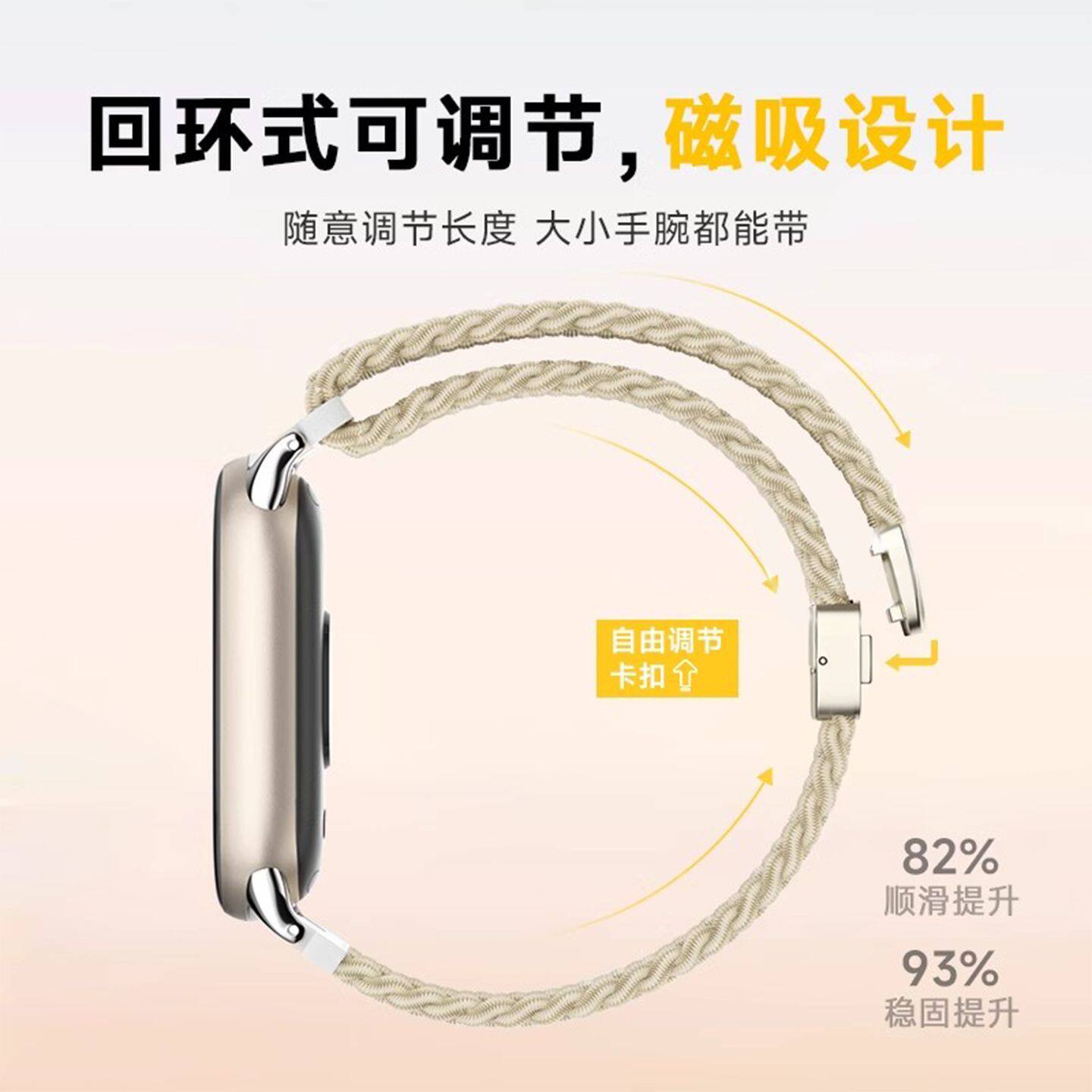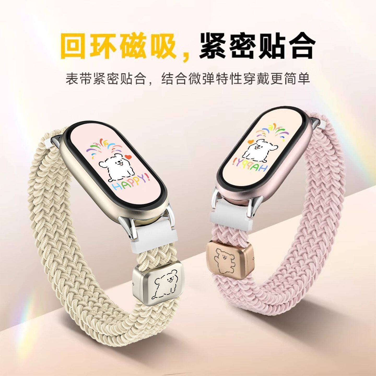 开心小狗适用小米手环10表带9尼龙编织磁吸8代可爱7高级6/5NFC版运动透气智能替换八九十专用腕带夏天男女款