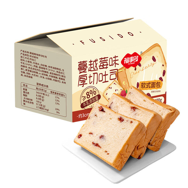 福事多蔓越莓味厚切吐司400g休闲零食早餐代餐
