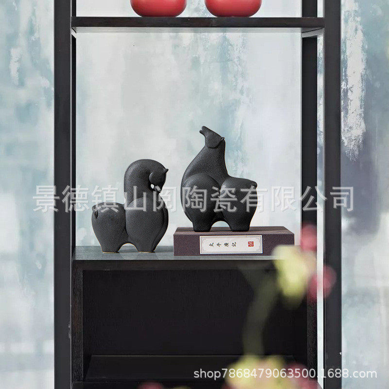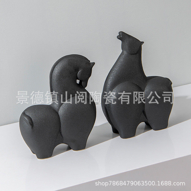 手工素烧抽象陶瓷马摆件样板房件柜子博古架售楼处软装饰摆设
