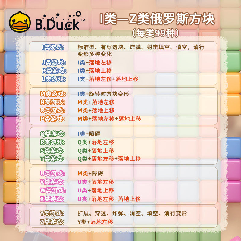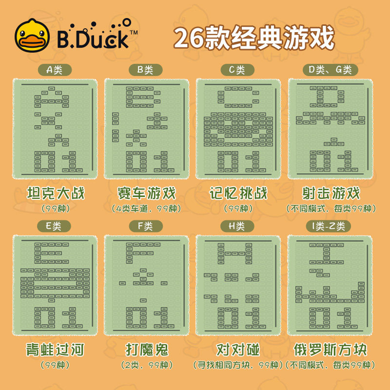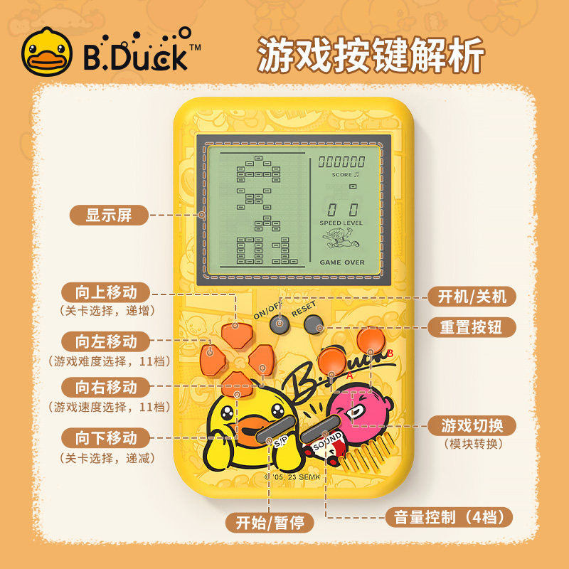 b.duck小黄鸭游戏机掌机怀旧款老式俄罗斯方块大屏幕儿童益智玩具