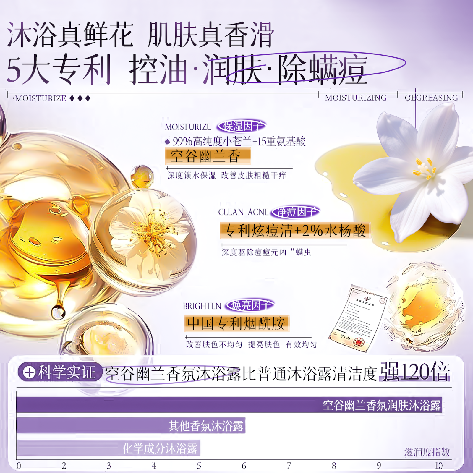 幽兰香氛沐浴露持久留香72小时香水乳液除螨祛痘女男士官方正品牌