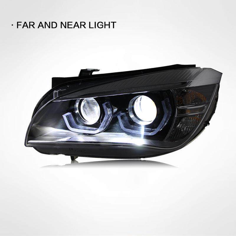 适用于10-15款宝马X1大灯总成改装LED勺子日行灯灯眉双光透镜大灯
