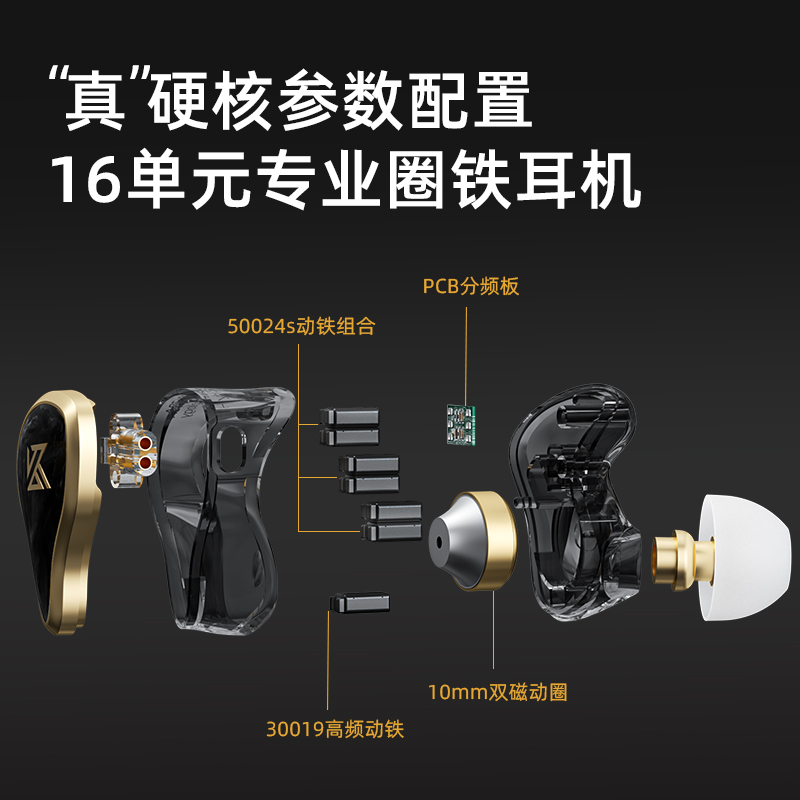 KZ ZAS圈铁耳机16单元手机有线hifi线控diy入耳式K歌高音质发烧级