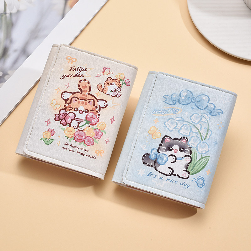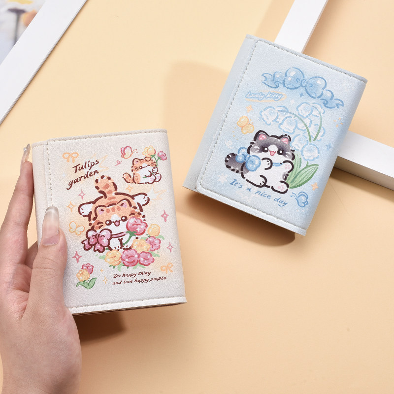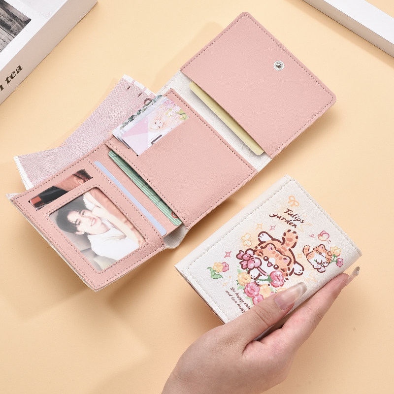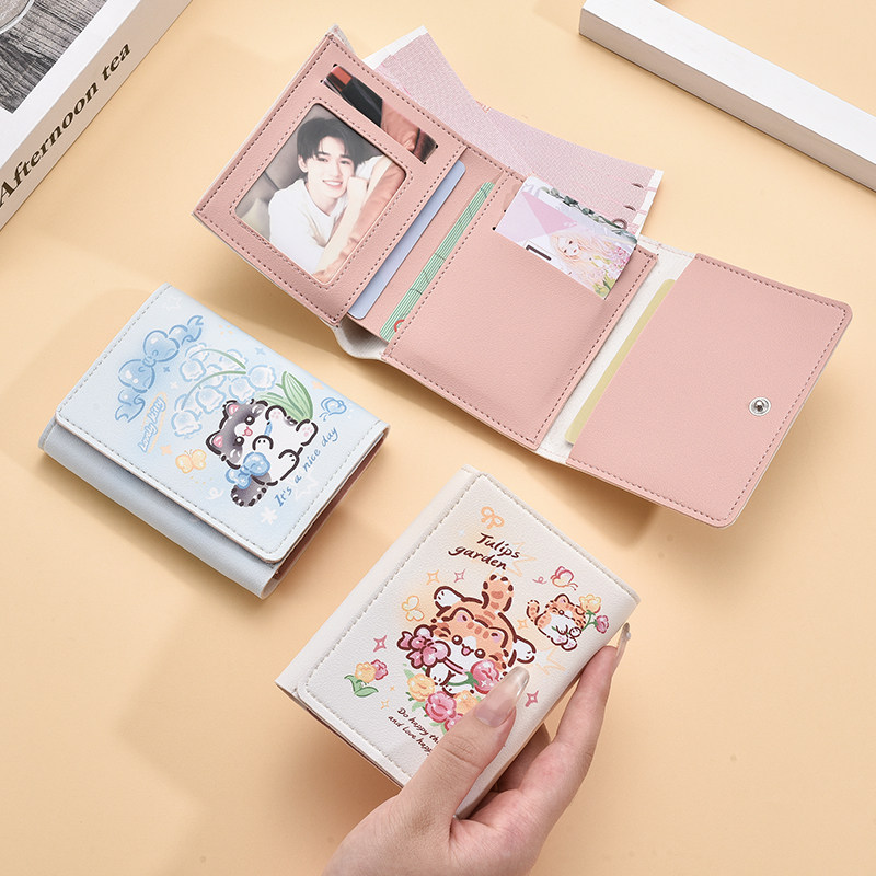 三折钱包女小众个性高级感可爱卡通小零钱包学生短款折叠皮夹卡包