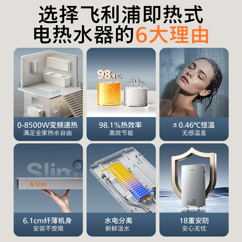 飞利浦热水器电即热式小型家用洗澡卫生间过水热速热电热水器