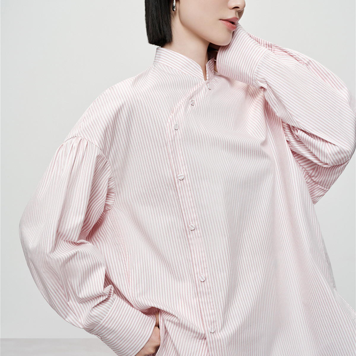 【新中式条纹衬衫】naivee26春新款红白色立领上衣舒适全棉