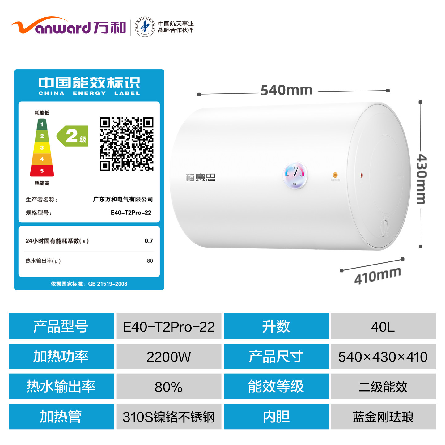 万和官方电热水器40升家用卫生间速热省电免租房储水式速热T2Pro