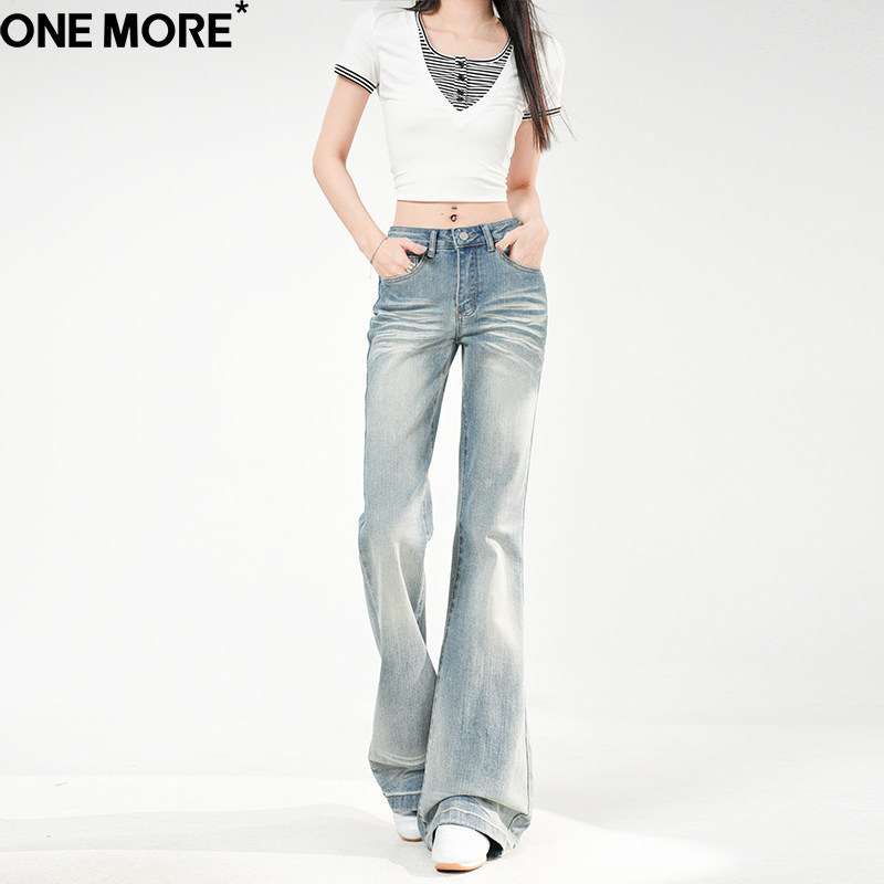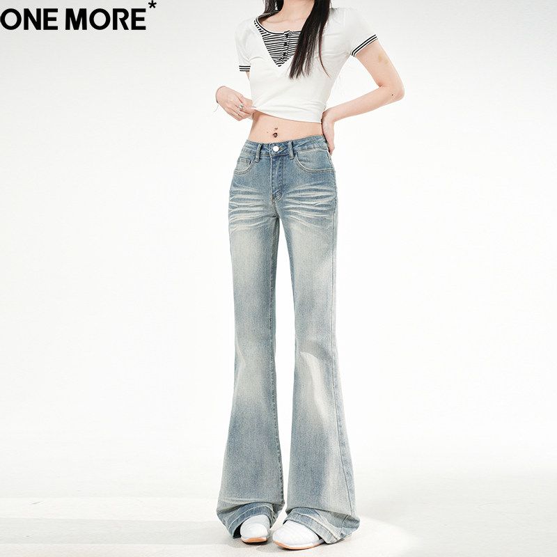 One More美式浅色系低腰微喇牛仔裤女2026春季新款弹力紧身喇叭裤
