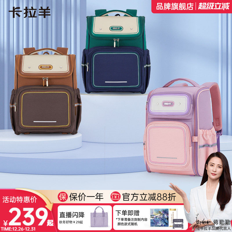 卡拉羊中学生书包减负风琴书包男女生青少年书包小学生书包儿童双肩包男孩大容量女孩防水书包品牌旗舰正品