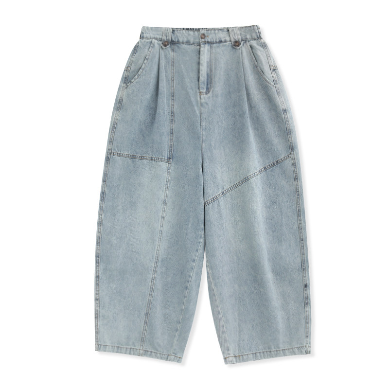 四面弹丹宁色牛仔阔腿裤25年新款宽松显瘦牛仔长裤89173