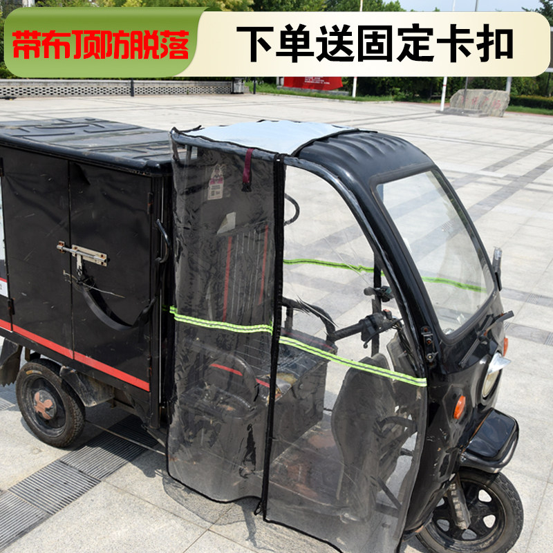 电动三轮车快递车围帘全包加厚防冻带布顶防脱落左右前挡透明雨帘