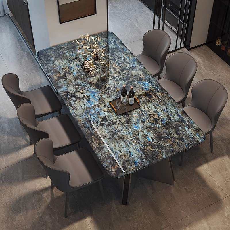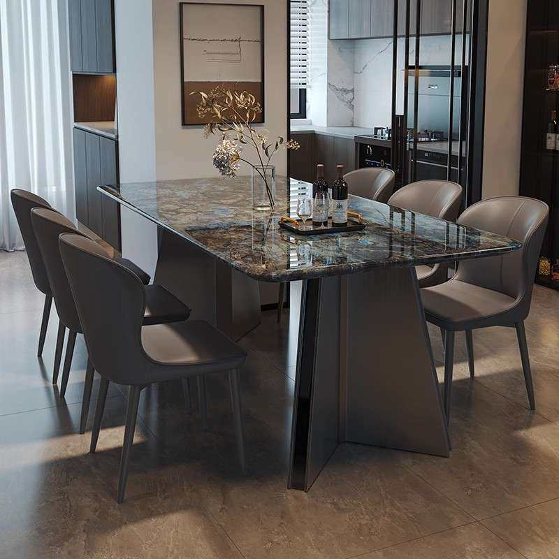 轻奢大理石餐桌现代简约长方形家用餐桌椅组合小户型不锈钢吃饭桌