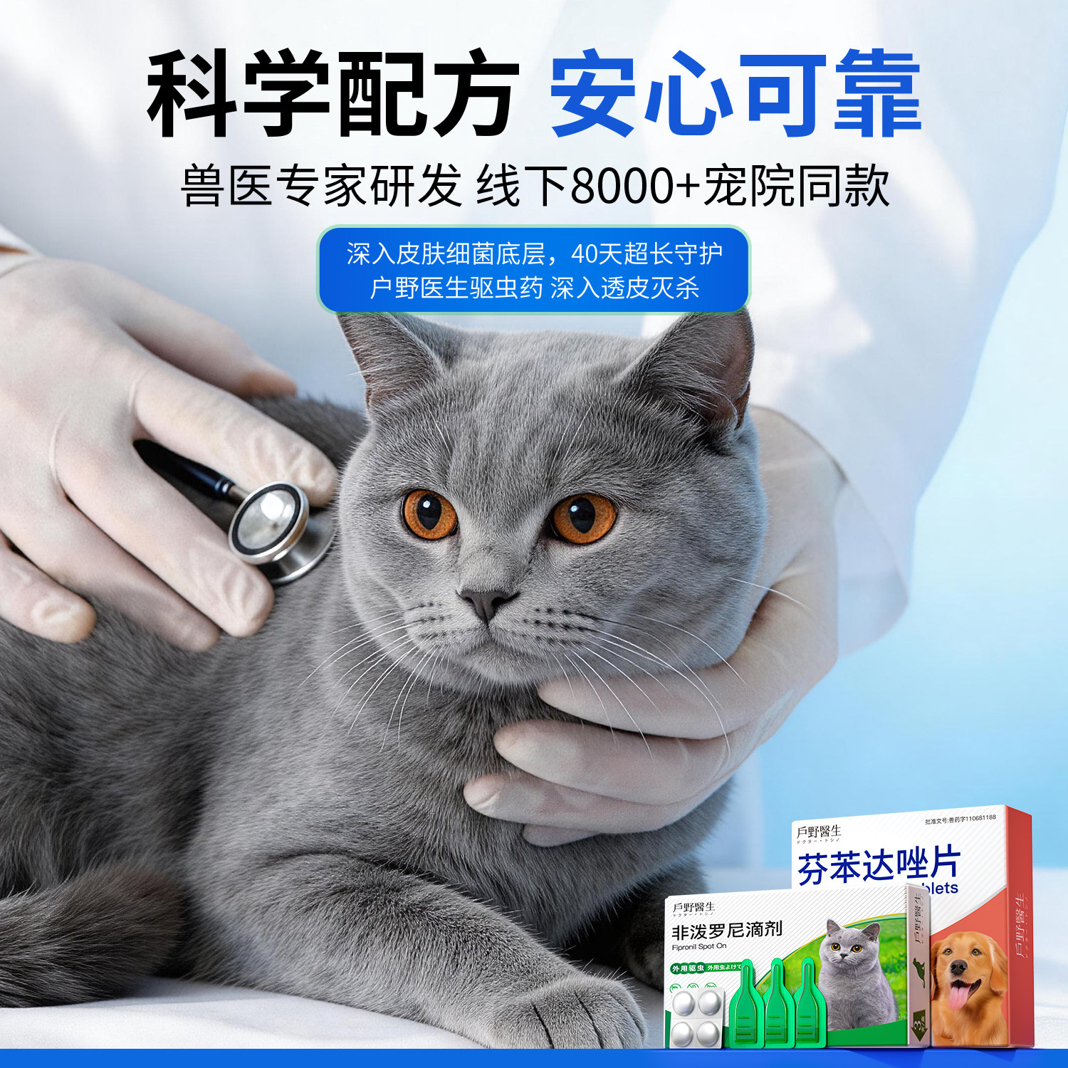 猫咪驱虫药体内外一体宠物狗狗专用幼猫跳蚤蜱虫同驱非泼罗尼滴剂