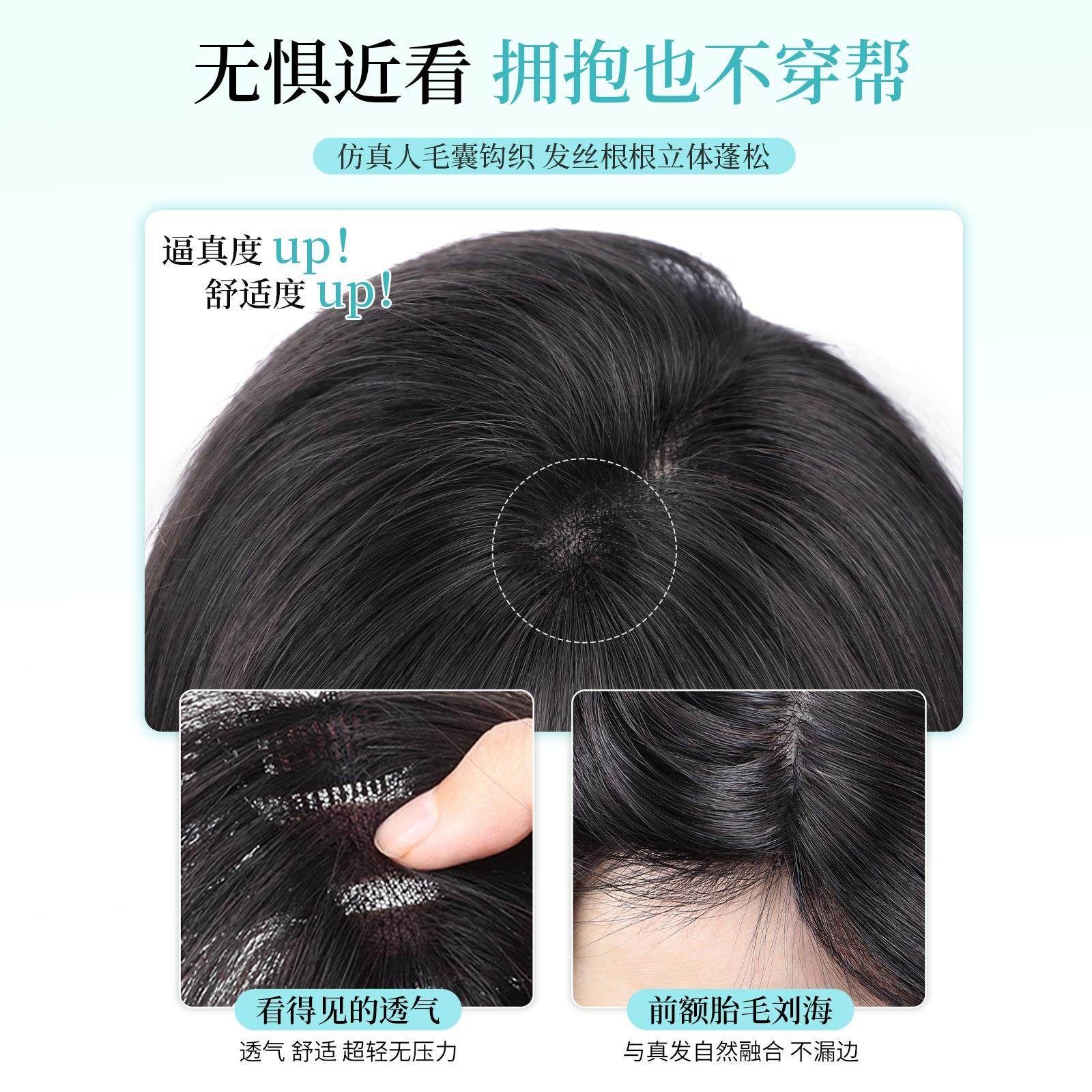 八字刘海假发女片头顶补发蓬松增发量仿真发隐形无痕高颅顶假发片