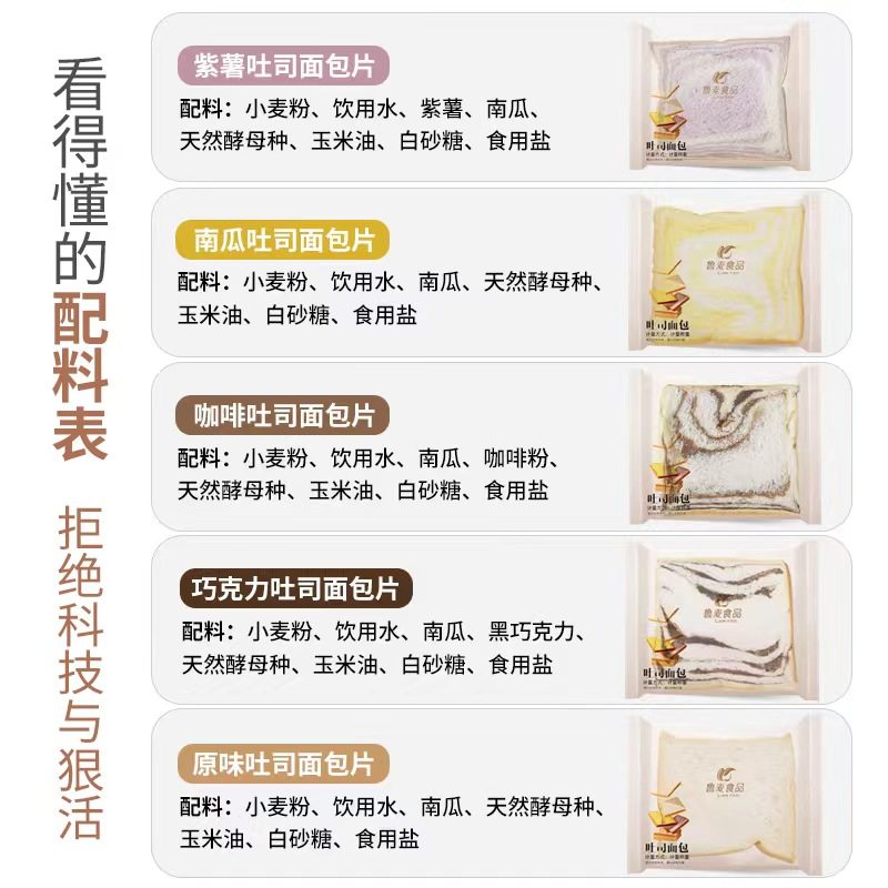 鲁麦纯素吐司面包片无蛋奶无添加剂原味南瓜素食三明治顺丰包邮