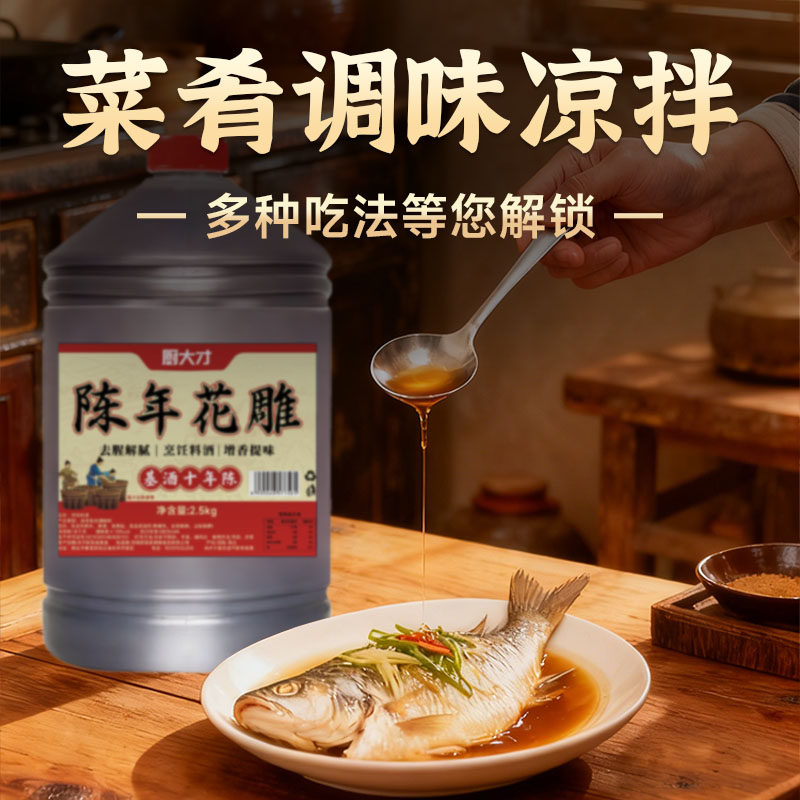 绍兴红花雕酒十年陈花雕酒2500ml浙江老酒料酒黄酒厨房用去腥增香