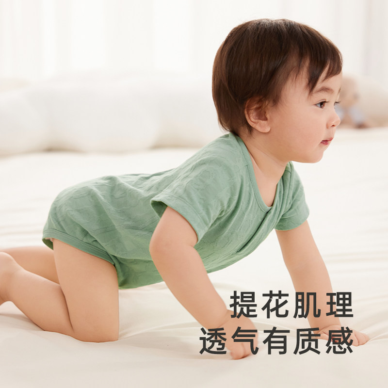 【商场同款】英氏新生婴儿衣服夏季薄款初生宝宝连体衣爬服包屁衣