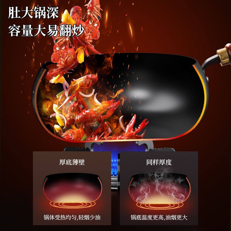 三四钢?不锈钢0涂层炒锅家用316L食品级加厚圆底炒菜锅官方正品