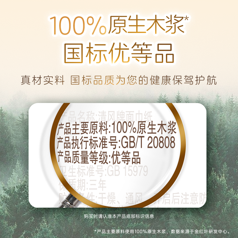 清风原木棉柔抽纸4层加厚学生宿舍面巾纸家用实惠装餐巾纸卫生纸