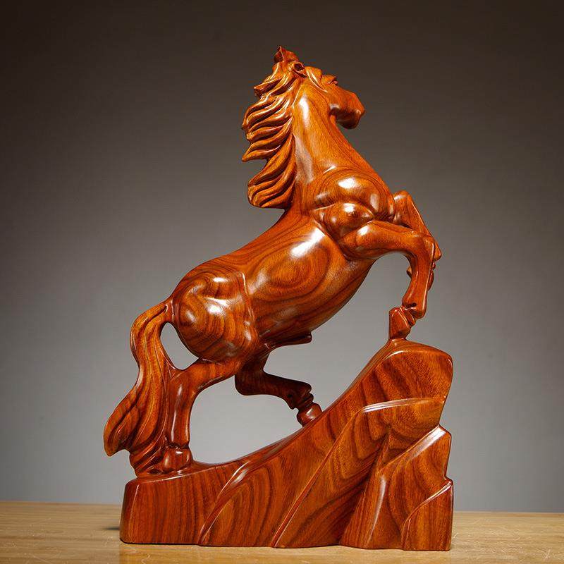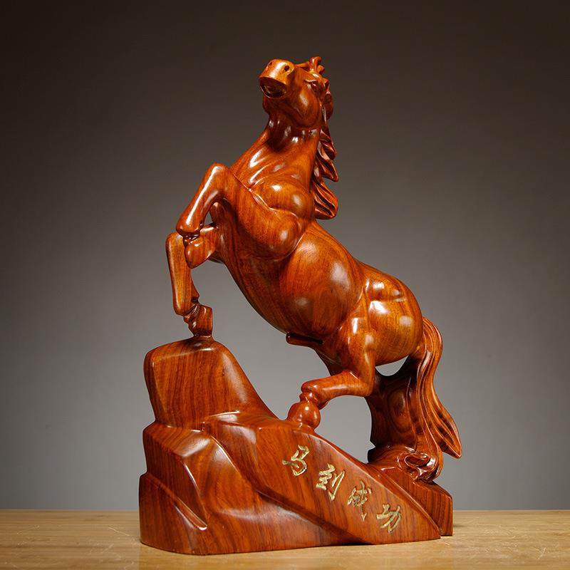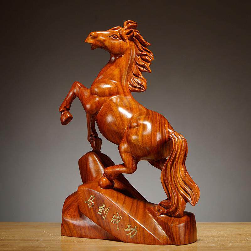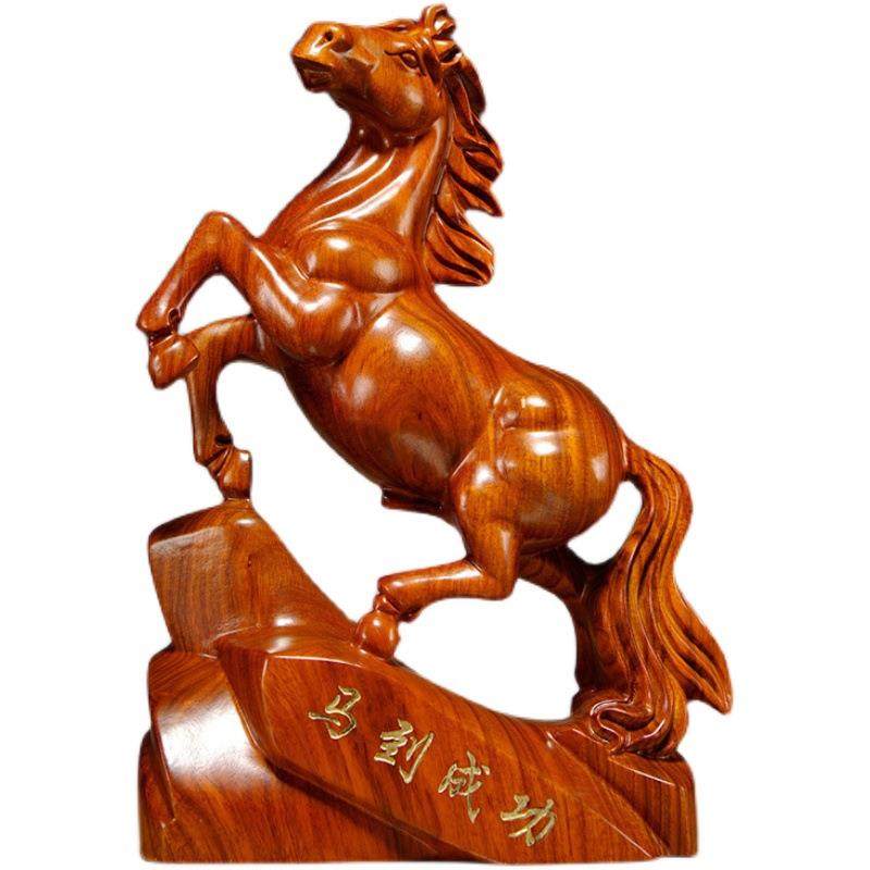 花梨木雕马摆件木质马雕刻工艺品红木马摆件木马创意家居开业礼品
