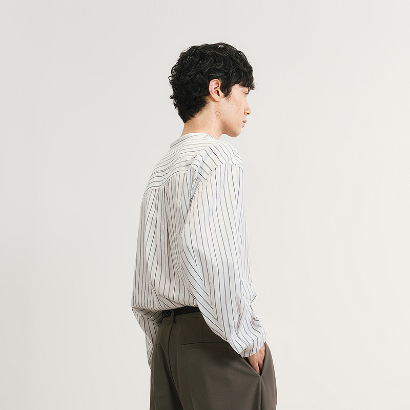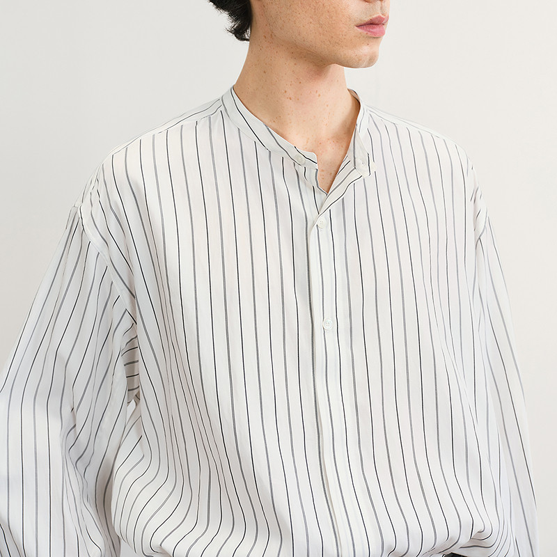 速写男装春夏新款男士衬衫长袖衬衣条纹立领衬衫新中式休闲时尚