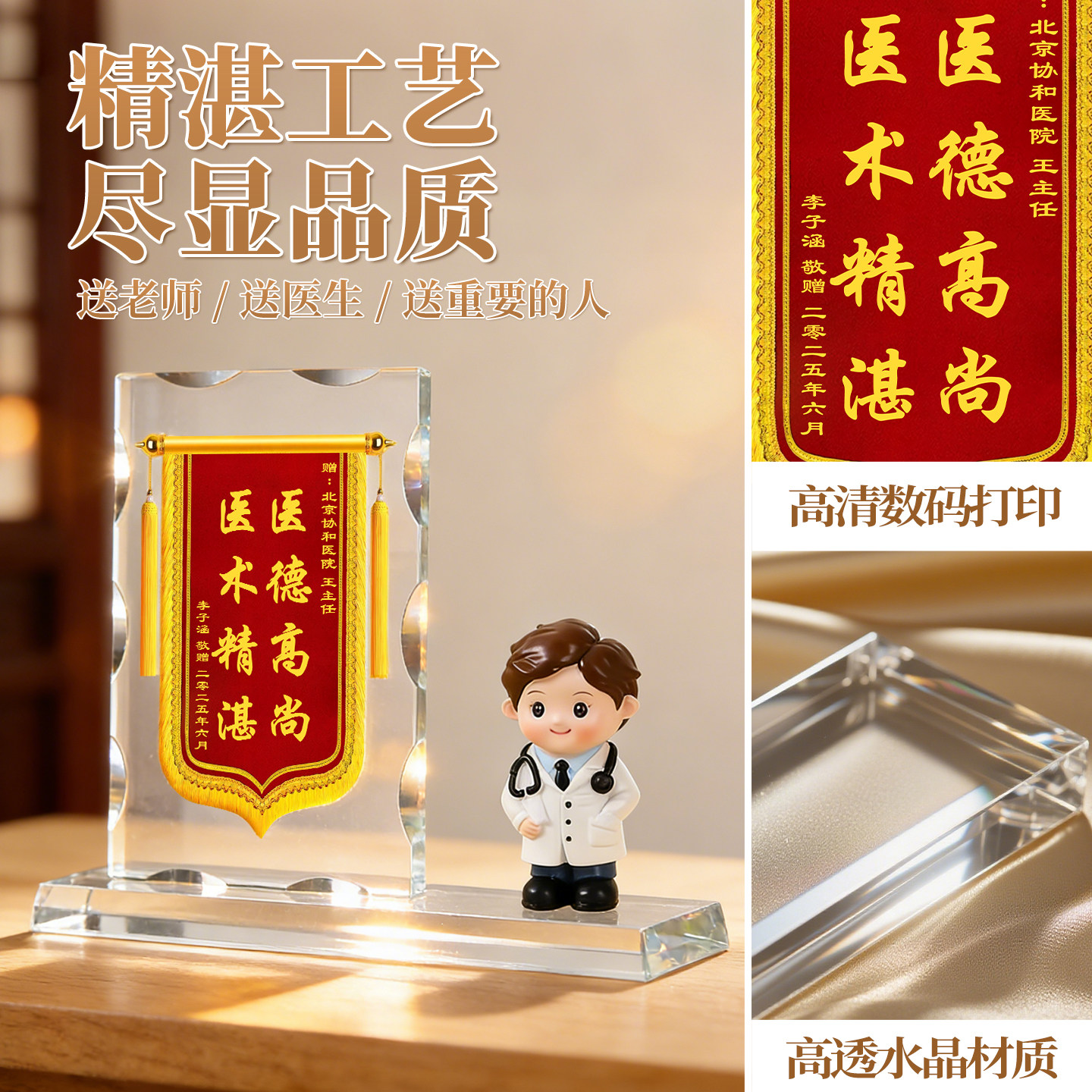 锦旗桌面摆件定制感谢医生水晶锦旗赠送护士医护人员月嫂礼物定做订做高档锦旗摆台送幼儿园老师教师节礼品