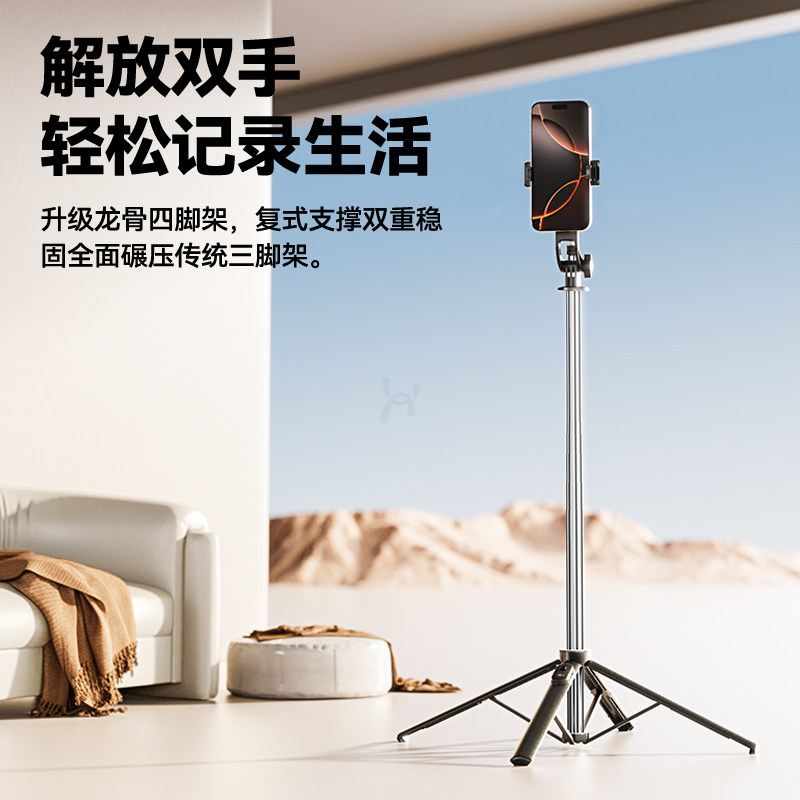 2026新款自拍杆落地三脚架防抖手机支架拍照通用直播支架自拍神器360度旋转手持四脚架户外旅游便携拍摄架