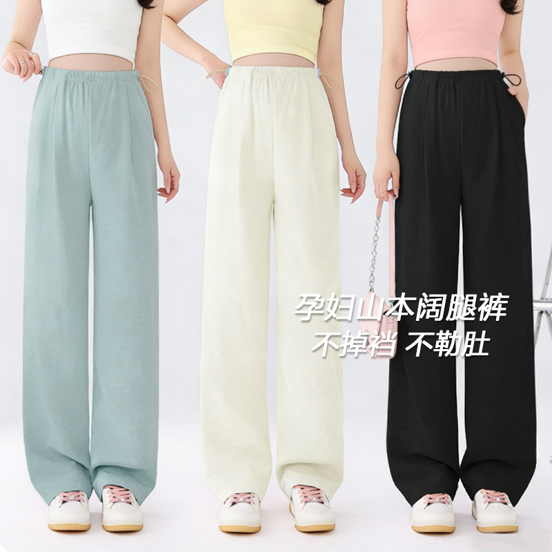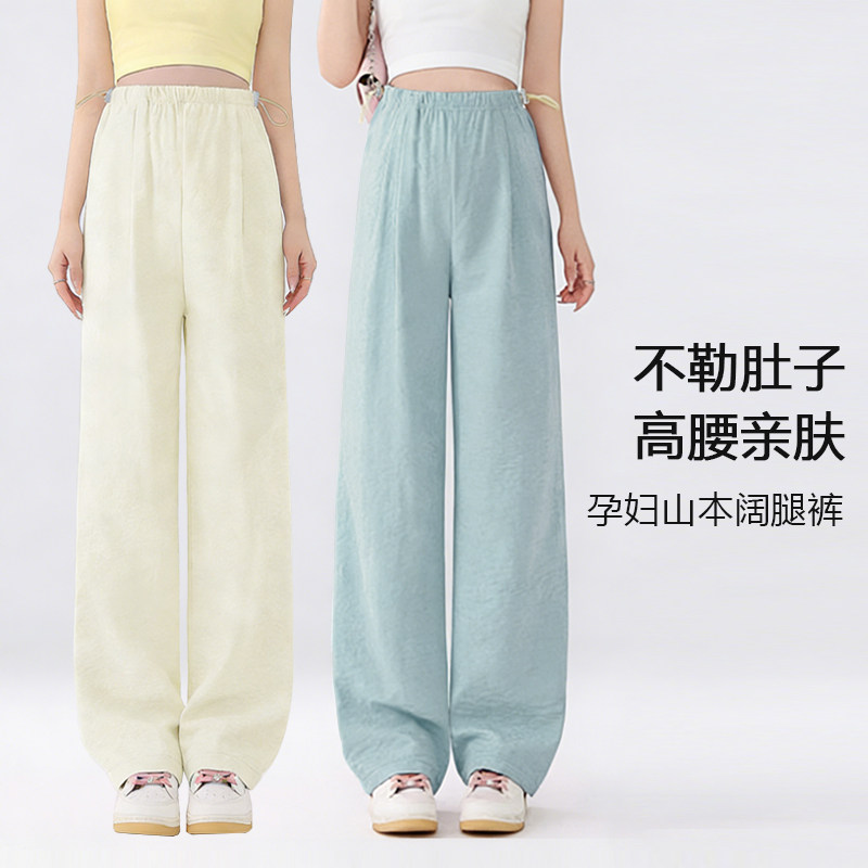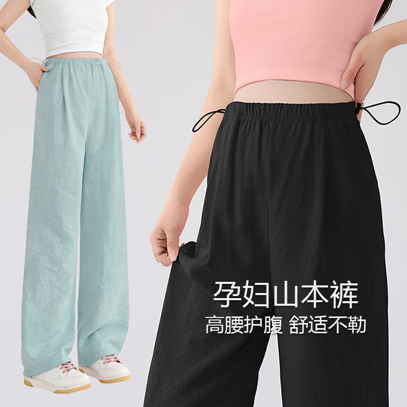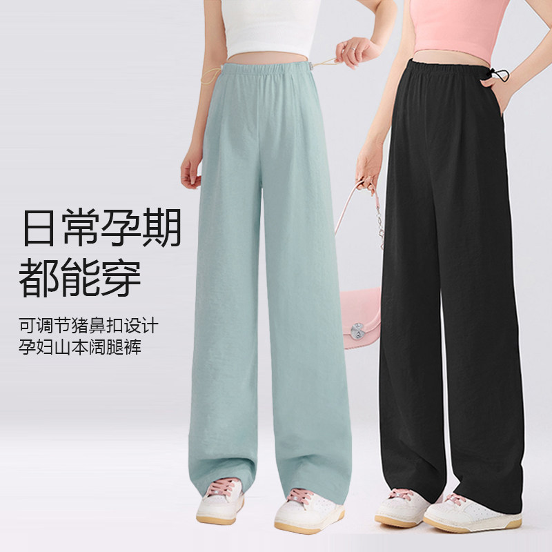 孕妇裤夏季薄款外穿奶芙山本裤阔腿大码冰丝孕期打底裤子夏装肚子
