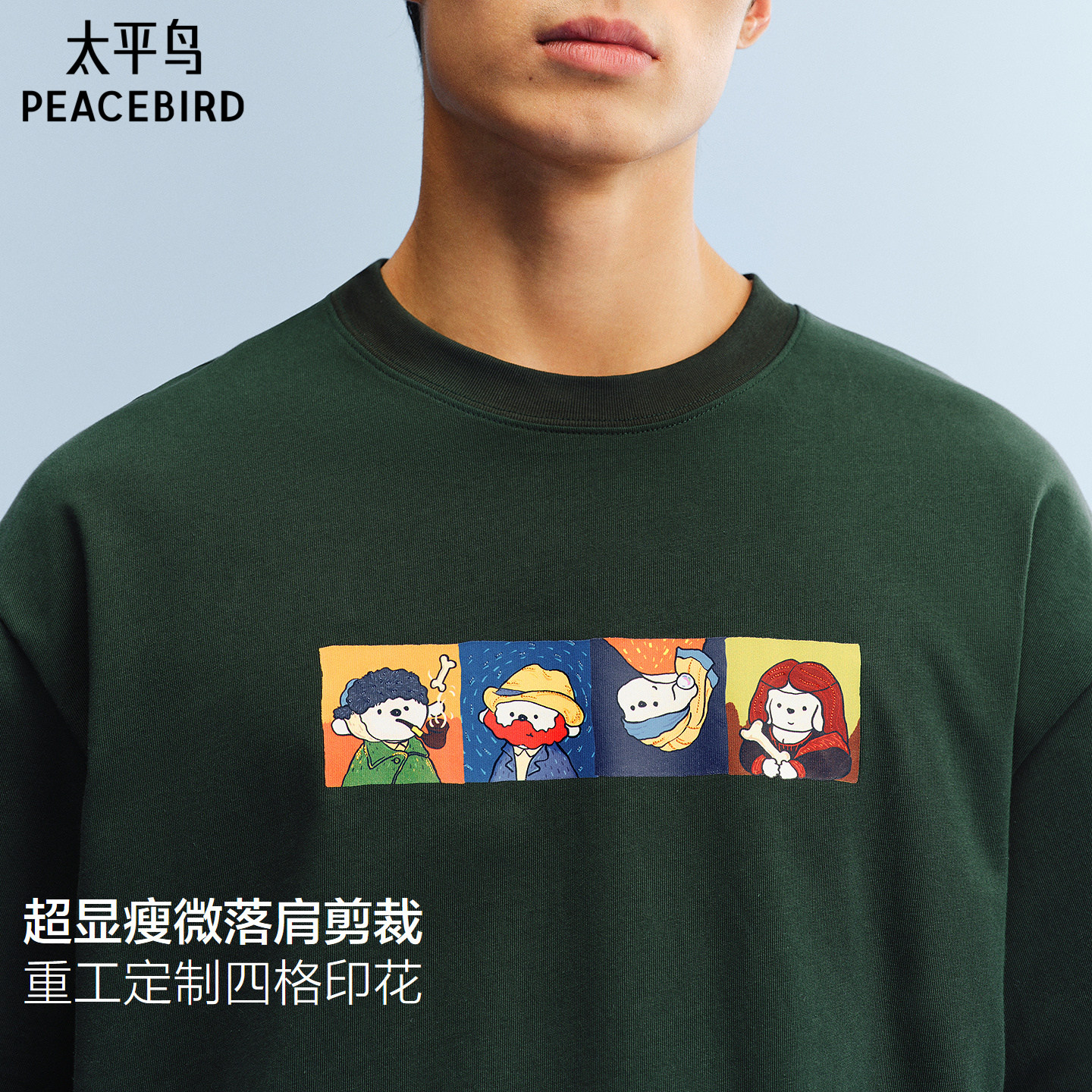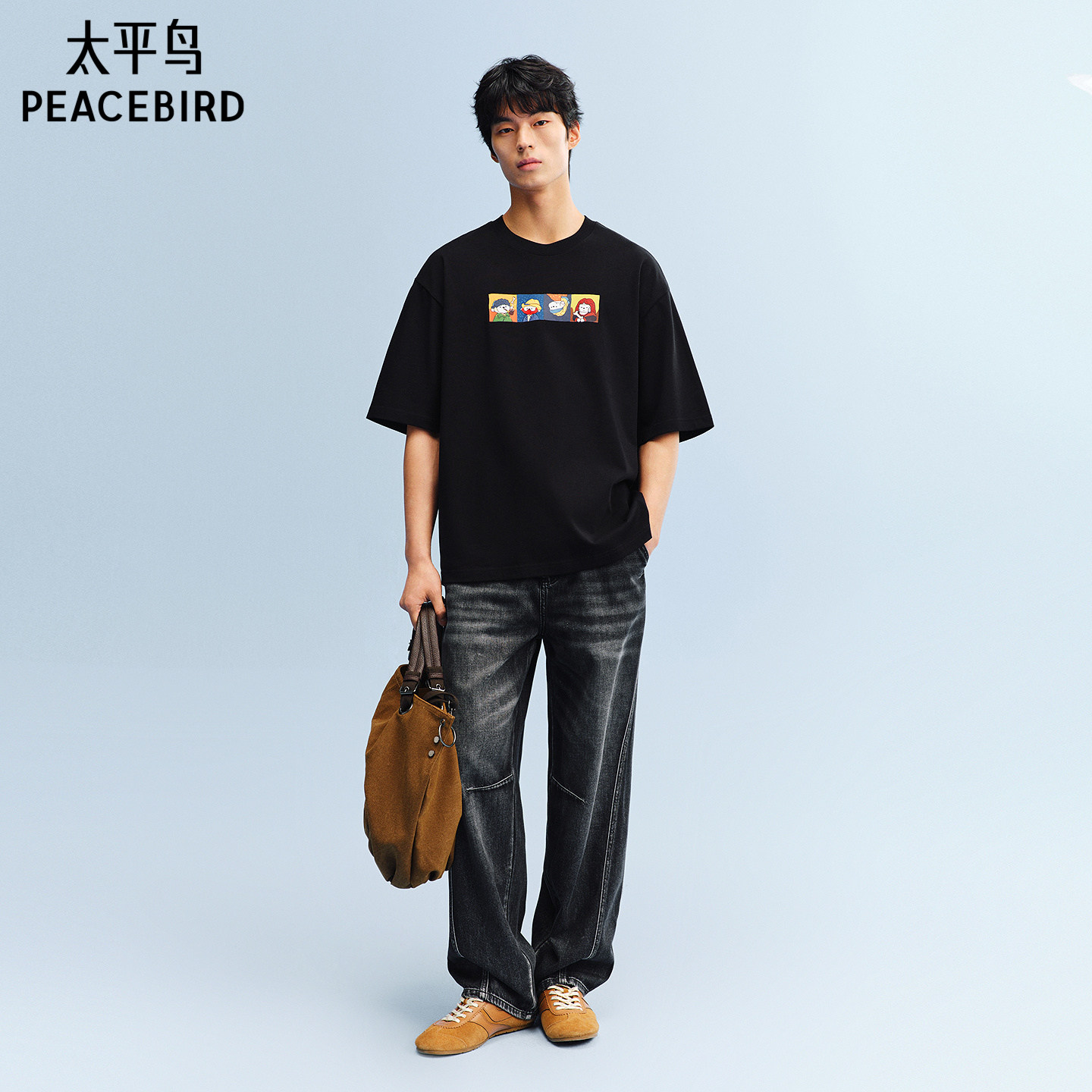 太平鸟男装T恤纯棉印花短袖T恤宽松潮流重磅体恤衫夏新款纯色半袖
