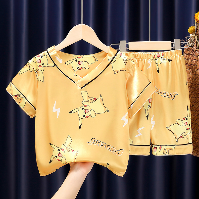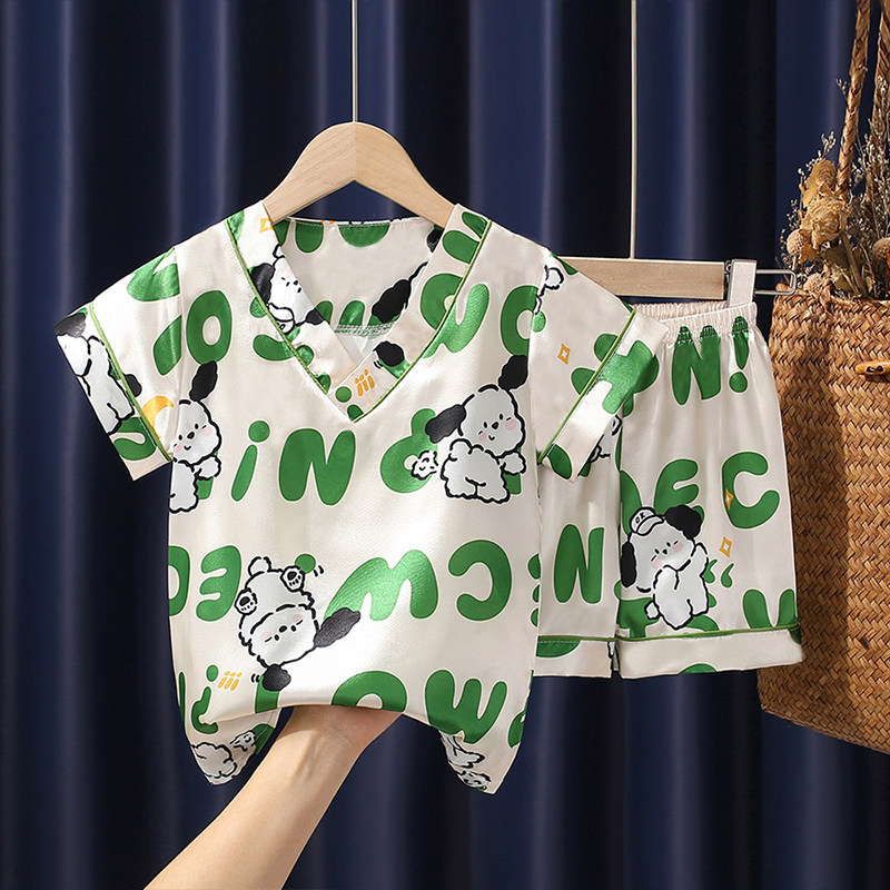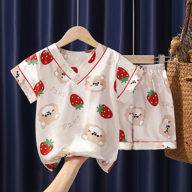 男女童睡衣夏季冰丝薄款短袖女中大童儿童家居服套装2025新款短裤