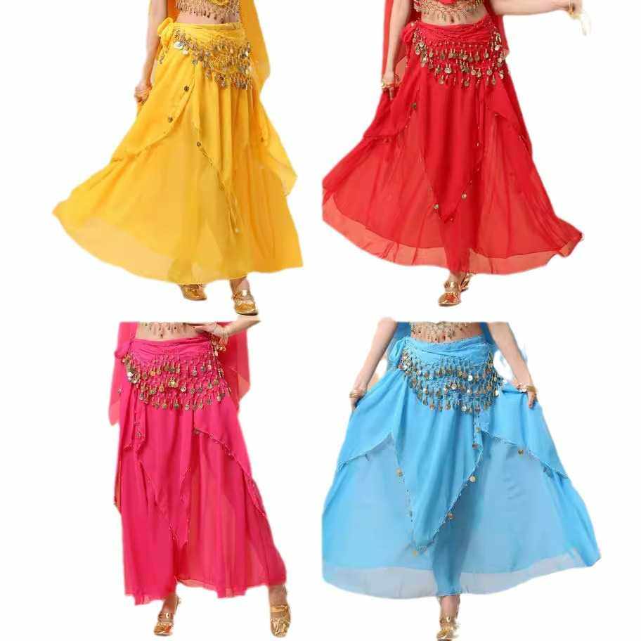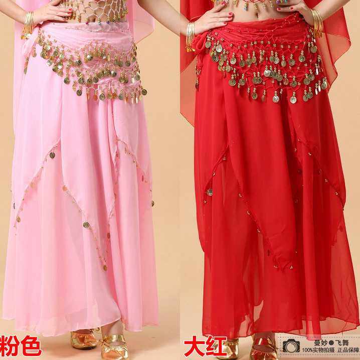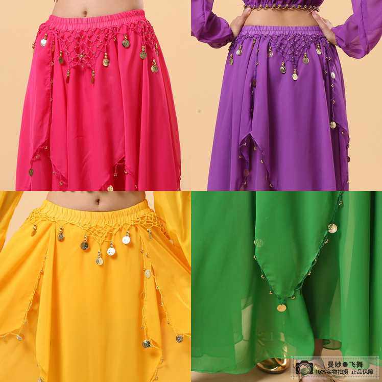 印度舞蹈表演出服装裙 肚皮舞裙子雪纺练习裙子吊币裙大裙摆