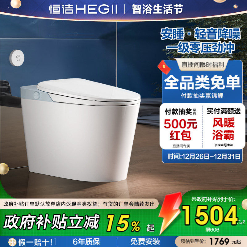 【安睡静冲】恒洁轻智能马桶座圈加热自动坐便器小户型家零压606