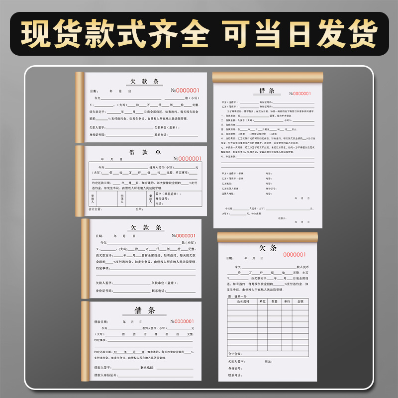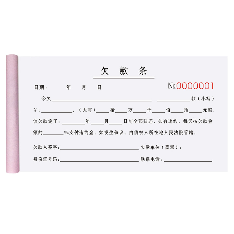 欠条个人正规模板二联欠货款单据挖机欠单借条借款本购货欠款条