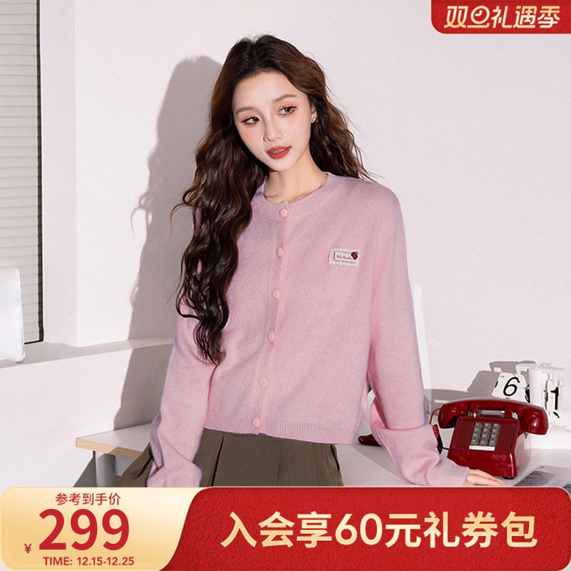 热风女士秋冬新款针织开衫山羊绒亲肤温柔千金风简约毛衣外套