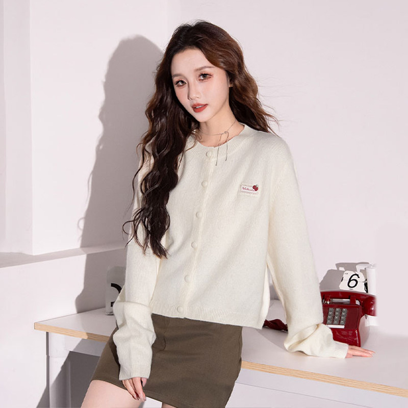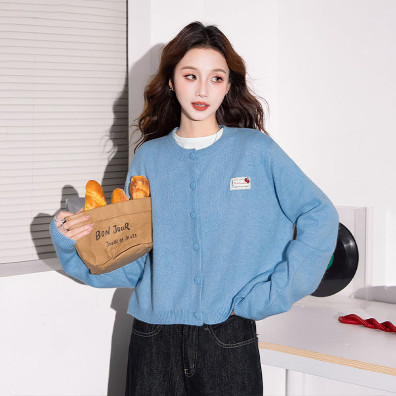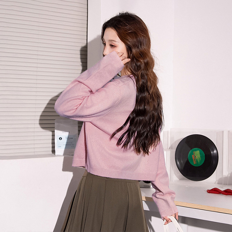 春秋薄款羊毛针织开衫女韩版圆领宽松短款羊绒衫外搭毛衣外套上衣